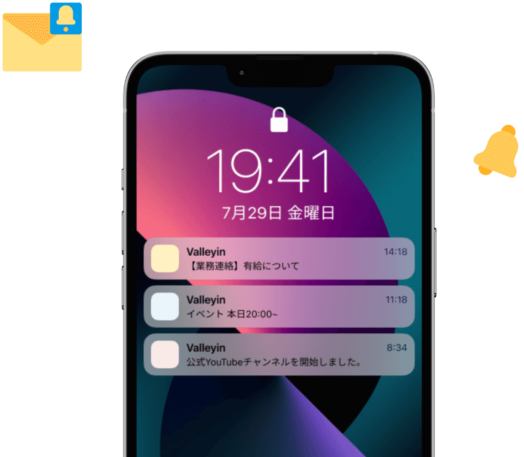 アプリを使っているユーザー全員で質問、雑談がした際に便利な掲示板や、日時と場所、タイトルや概要などを投稿し、参加、不参加の出欠が集められるイベント機能。普段関わり のないユーザーが共通の趣味を見られるなど、会社全体でより深い繋がりを持つことができます。